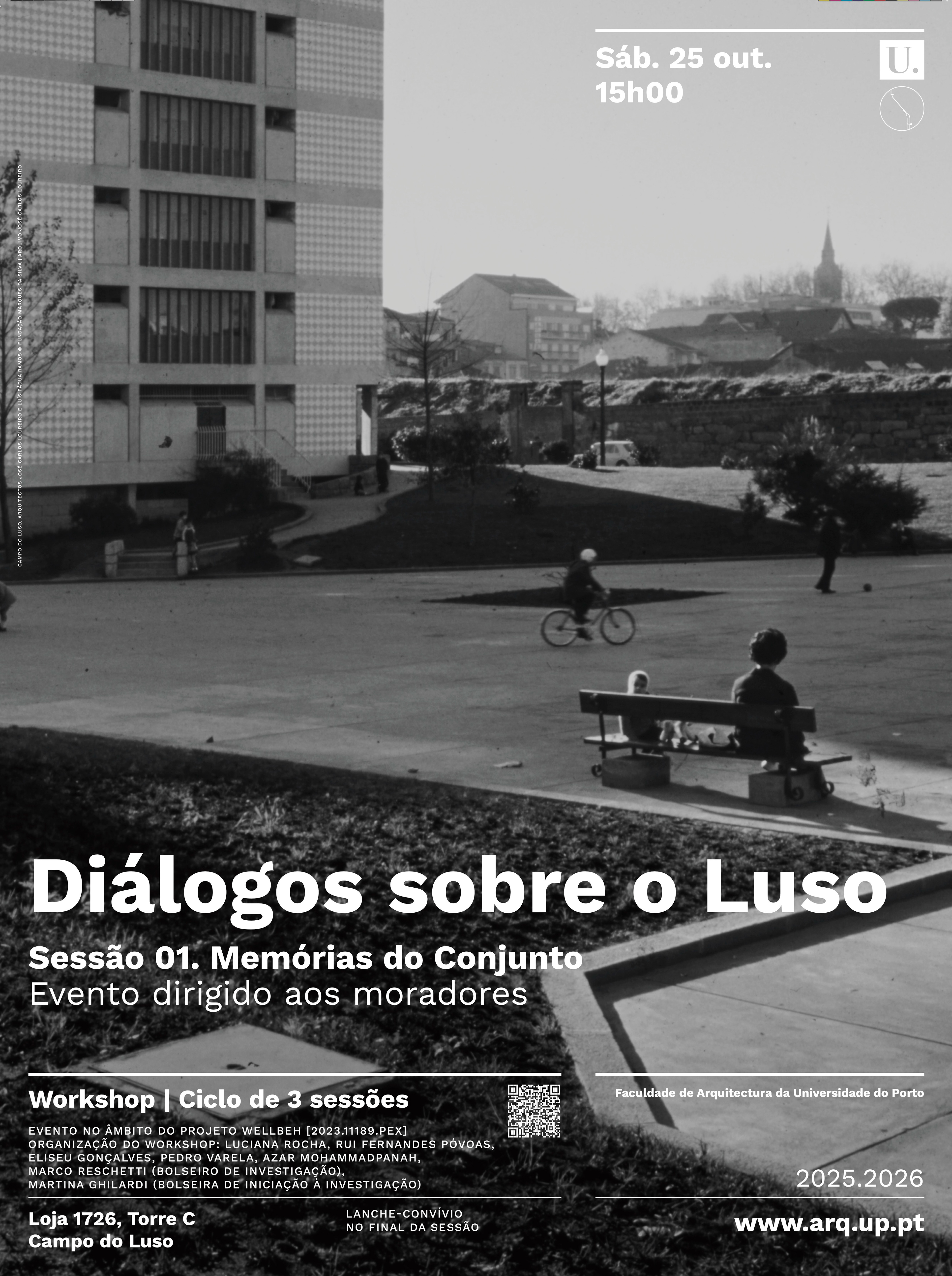 Entitled "Diálogos sobre o Luso", this first session proposes an open dialogue on the recognition of the architectural heritage of the housing complex, based on the memories and experiences of those who live there. The meeting aims to identify the aspects that make Campo do Luso a unique place and to share knowledge about its origin.